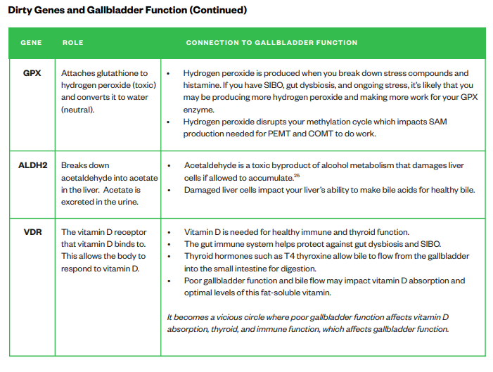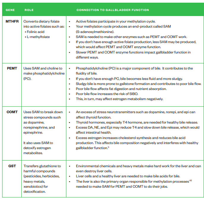 You need optimal methylation, a clean MTHFR gene, a clean PEMT gene, and plenty of choline to make phosphatidylcholine. You also need amino acids (protein), especially glycine and taurine, for bile salt formation.