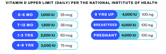 • Know how much D3 is in each of the supplements you take frequently. Many people take a multivitamin, immune support, and a vitamin D supplement. This can lead to potentially too much D3, especially if they do not use vitamin K2 with it.